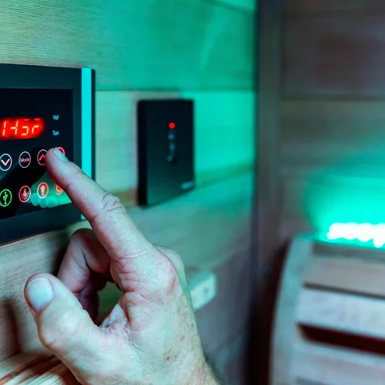 When finished, please wipe down or absorb any sweat or moisture. Turn the sauna off using the control panel (if you forget, no worries its on a timer), exit the sauna, and close the door gently behind you.